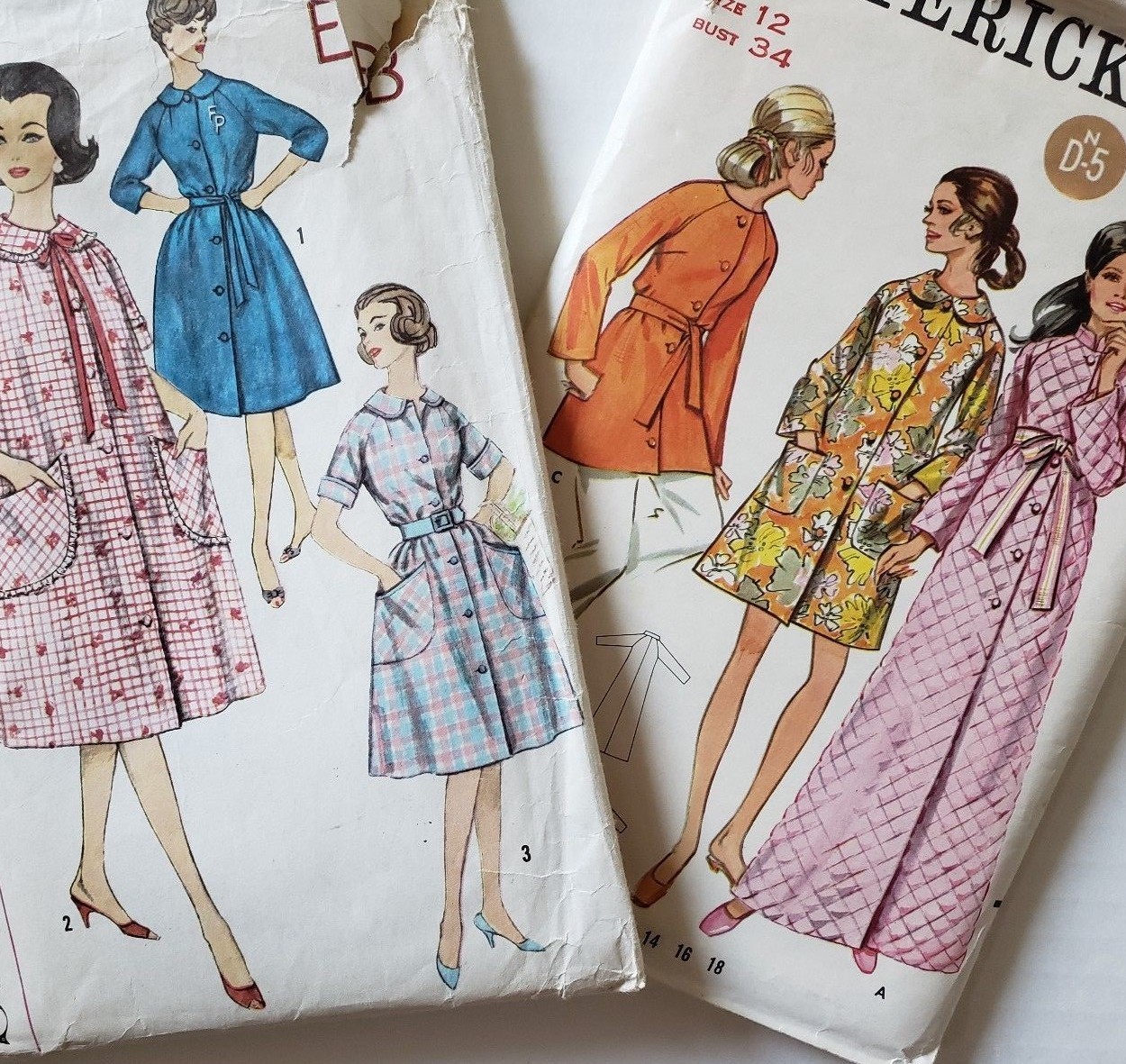 Womens Robes House Dress Pattern Lot Simplicity 3712 50s Butterick 5556 60s Ebay